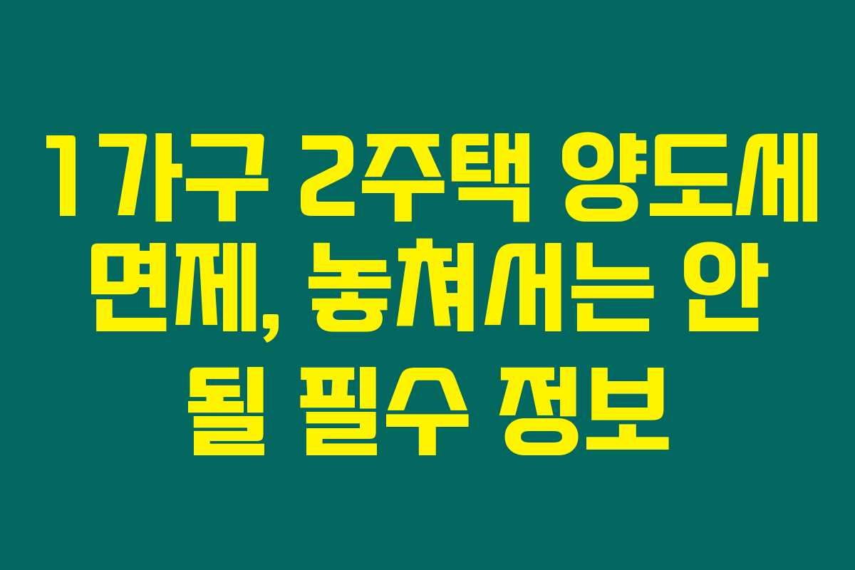 1가구 2주택 양도세 면제, 놓쳐서는 안 될 필수 정보