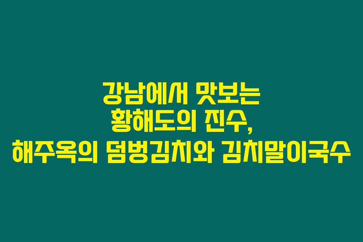 강남에서 맛보는 황해도의 진수, 해주옥의 덤벙김치와 김치말이국수