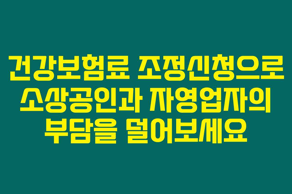 - 조정신청을 통해 건강보험료를 한껏 낮추는 방법은 소상공인에게 필요한 방법입니다.