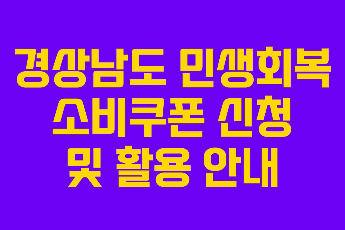 경상남도에서는 지역 경제 활성화를 위해 ‘민생회복 소비쿠폰’을 올해 7월 21일부터 9월 12일까지 1차 지급합니다. 이 쿠폰은 도민의 소비를 촉진하고 소상공인을 지원하기 위한 프로그램으로, 모든 도민이 신청할 수 있습니다.