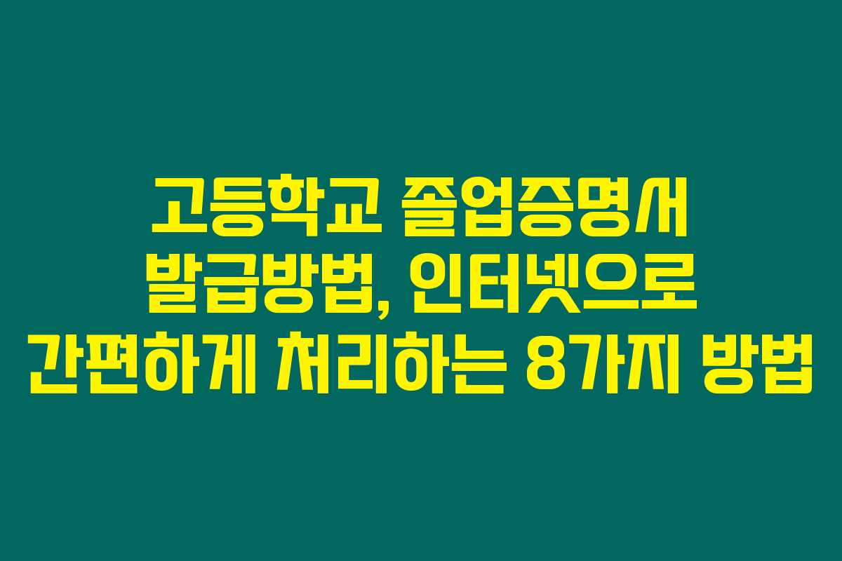 제가 알아본 바로는, 고등학교 졸업증명서 발급은 생각보다 간편한 방법들이 많이 있습니다. 특히, 대학교에서도 비슷한 방식으로 졸업증명서를 발급받을 수 있어 여러 상황에 매우 유용합니다. 아래를 읽어보시면, 다양한 발급 방법에 대해 자세히 알 수 있을 거예요.
