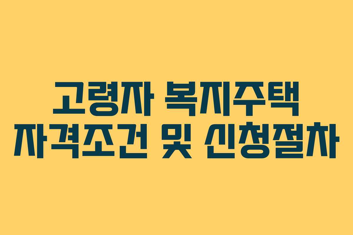 고령자 복지주택 자격조건 및 신청절차