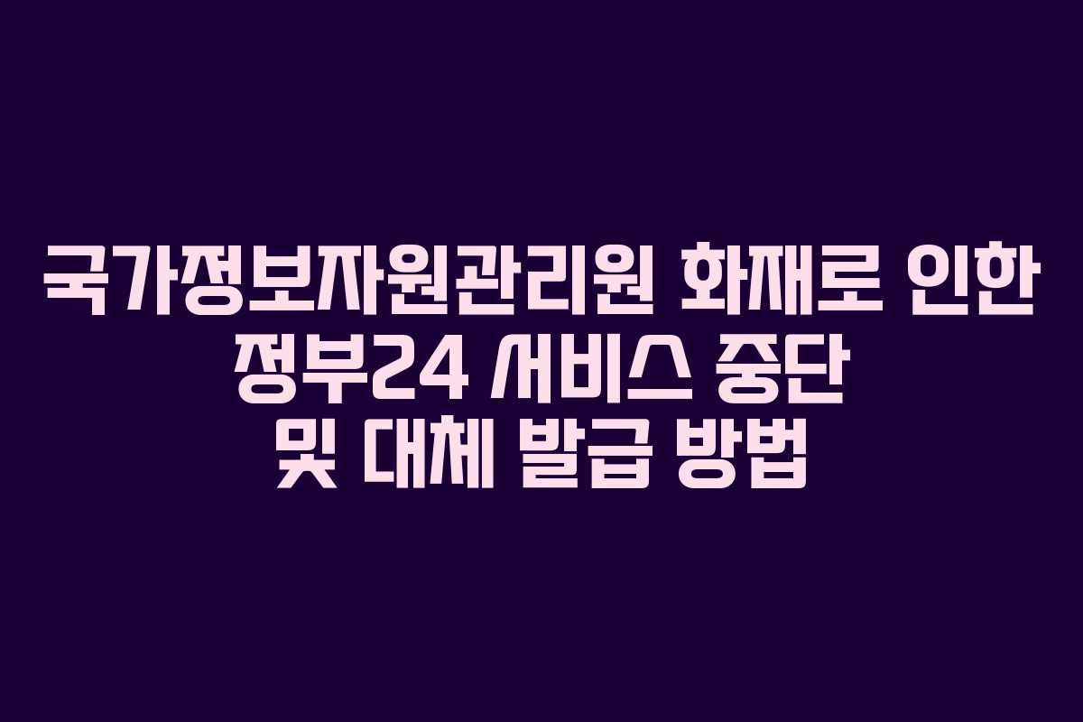 화재로 인해 정부24가 중단되자, 국민들은 기본적인 증명서를 발급받기 어려운 상황에 직면했습니다. 하지만 다양한 대체 발급 경로가 마련되어 있어 이를 활용할 수 있습니다. 예를 들어: