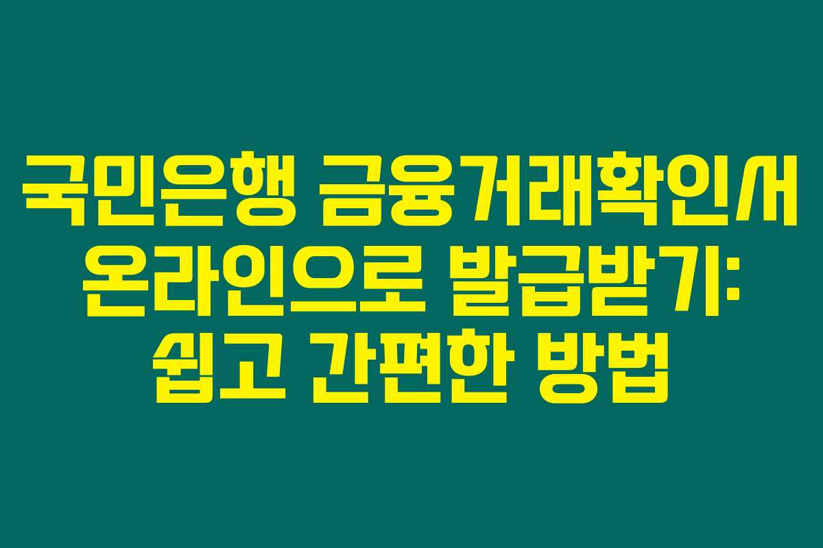 금융거래확인서가 필요하시다구요? 대출이나 자금 조달 시 필수 서류인 금융거래확인서, 요즘은 집에서도 쉽게 발급할 수 있다는 사실! 아래를 읽어보시면 국민은행에서 PC와 모바일을 통해 금융거래확인서를 바로 발급하는 방법을 단계별로 알려드릴게요.