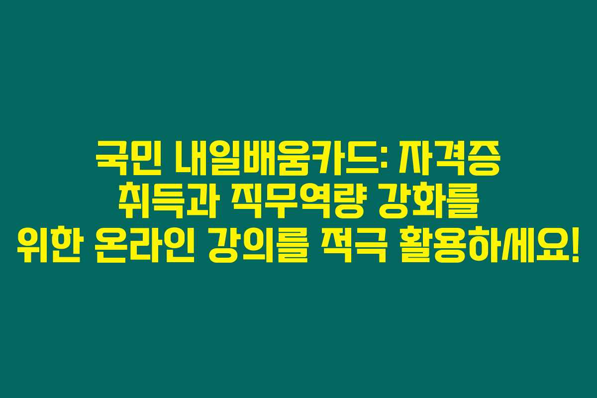 국민 내일배움카드 온라인 강의는 자격증 취득과 직무 능력 향상에 기여할 수 있는 아주 훌륭한 제도입니다. 무엇보다 인터넷 강의를 통해 자기계발을 손쉽게 할 수 있다는 점이 큰 매력이죠. 더 자세한 정보에 대해서는 추가 자료를 참고해 보세요!