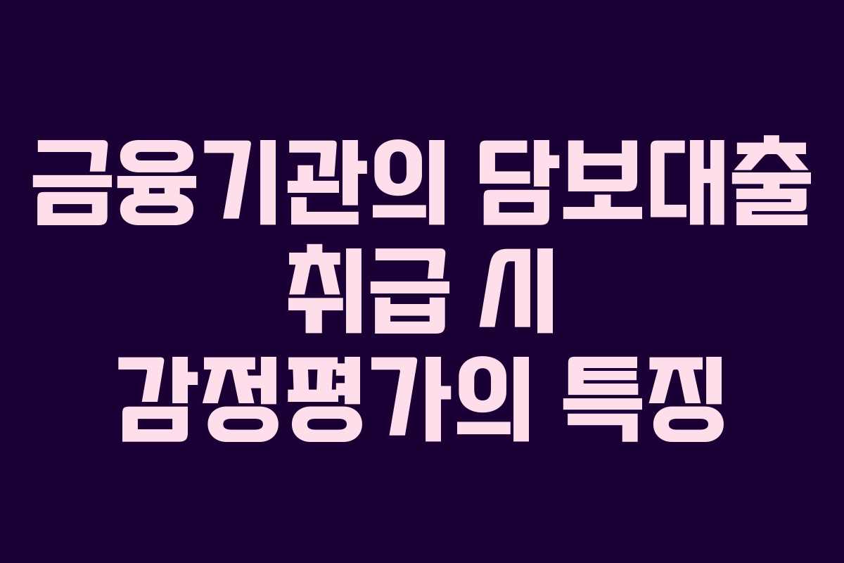 감정평가의 주된 목적은 담보의 가치를 정확히 파악하여, 대출 과정에서의 공정성을 확보하는 것입니다. 이는 금융기관과 대출자 모두에게 이익이 됩니다.