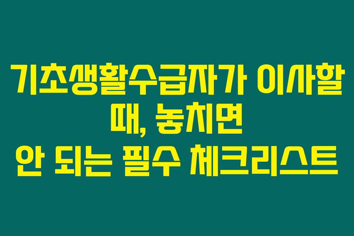 제가 직접 경험해본 결과, 기초생활수급자 혹은 차상위계층 분들이 이사할 때, 필요한 절차나 체크리스트에 대해 아래를 읽어보시면 도움이 될 것입니다. 이사는 단순한 이동을 넘어서, 여러 행정적 절차와 혜택을 유지하기 위한 중요한 과정이기 때문입니다. 따라서 여러분이 새로운 집으로 옮겨가는 과정에서 필수적으로 확인해야 할 사항들을 정리해보았습니다.