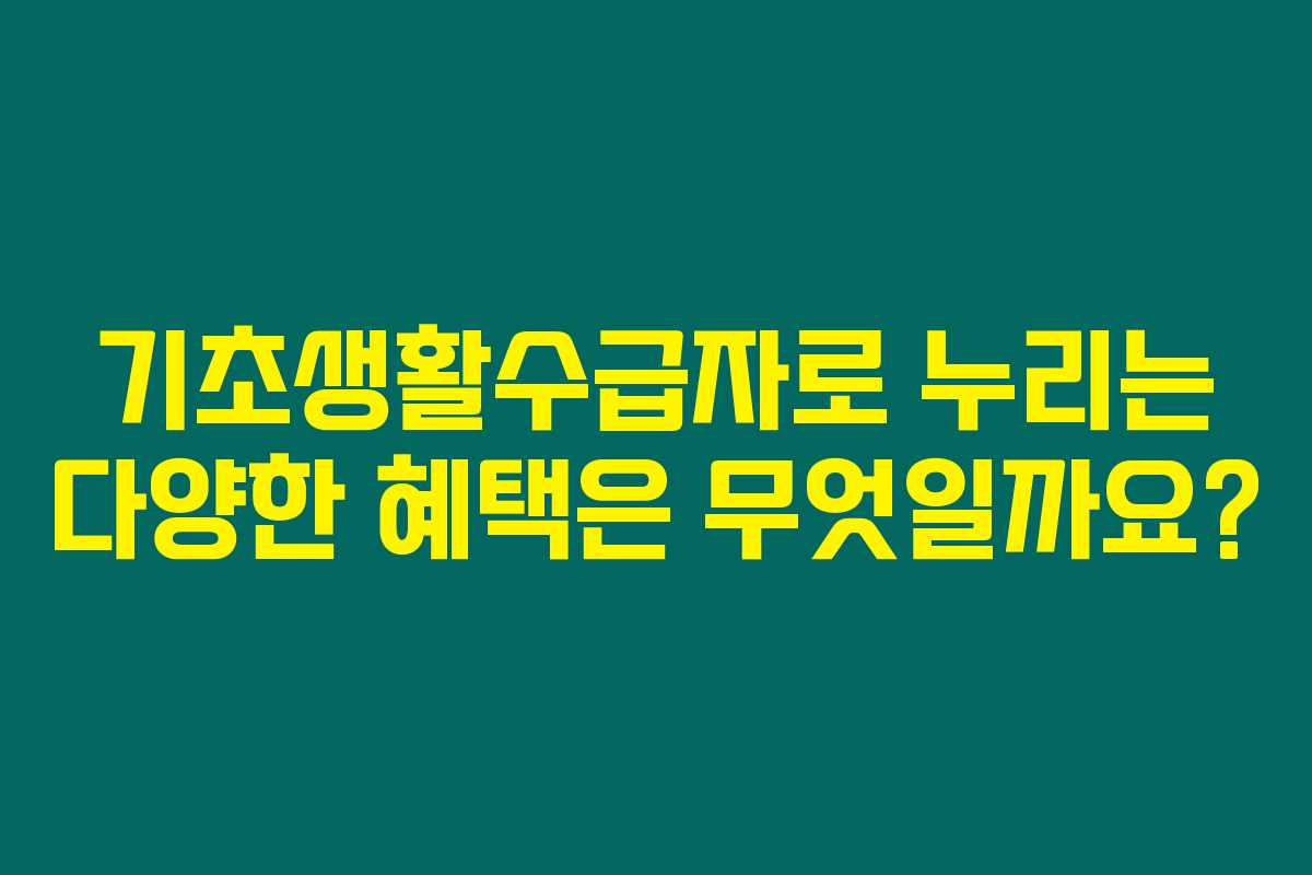 제가 직접 검색해본 바로는, 기초생활수급자에 대한 다양한 혜택과 그 정의, 관련 제도에 대해 알아보았습니다. 이 글에서는 기초생활수급자에 대한 정보와 함께, 각종 지원금을 받는 방법에 대한 상세한 내용을 소개해드리겠습니다.