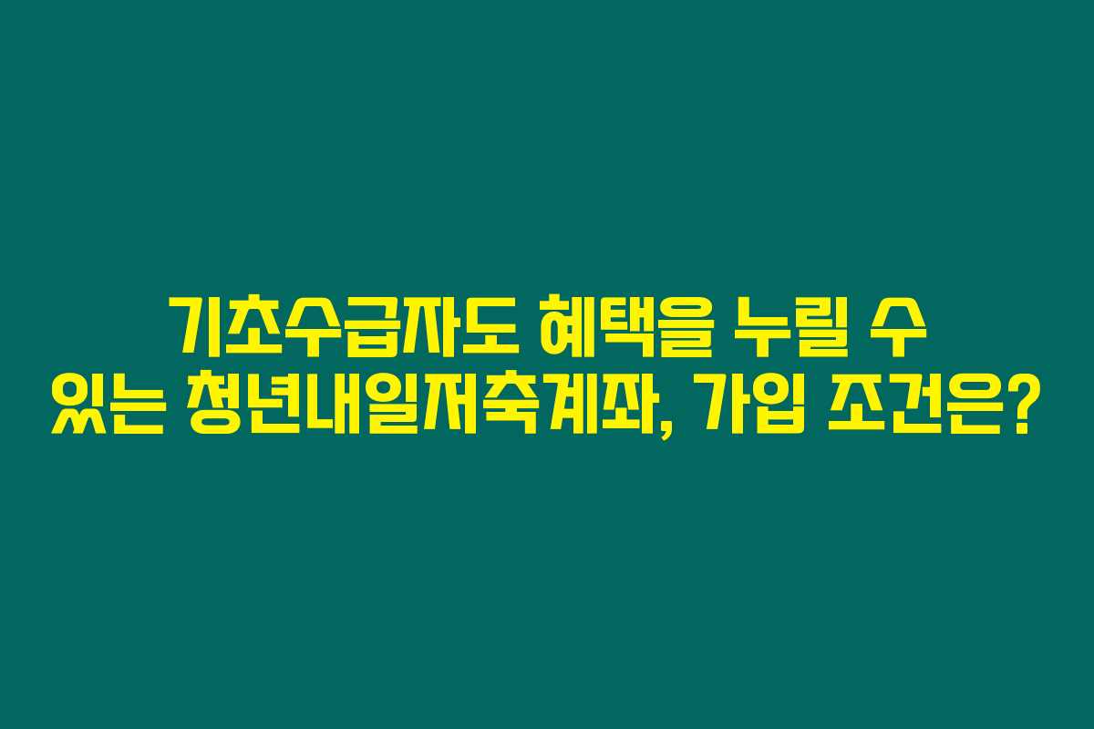 제가 직접 알아본 바로는, 기초수급자도 청년내일저축계좌에 가입할 수 있는 가능성이 있답니다. 이 계좌는 경제적으로 어려운 청년들에게 도움을 주기 위해 마련된 제도이기 때문에, 수급자의 경우라도 조건만 맞게 되면 얼마든지 신청 가능합니다. 아래를 읽어보시면 저는 이 제도와 가입 요건에 대해 더 자세히 설명드리겠습니다.