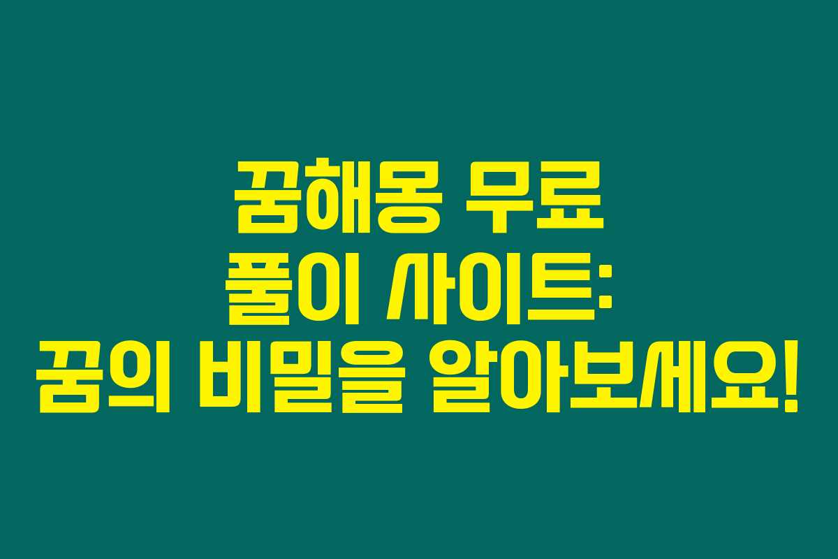 꿈해몽 무료 풀이 사이트: 꿈의 비밀을 알아보세요!