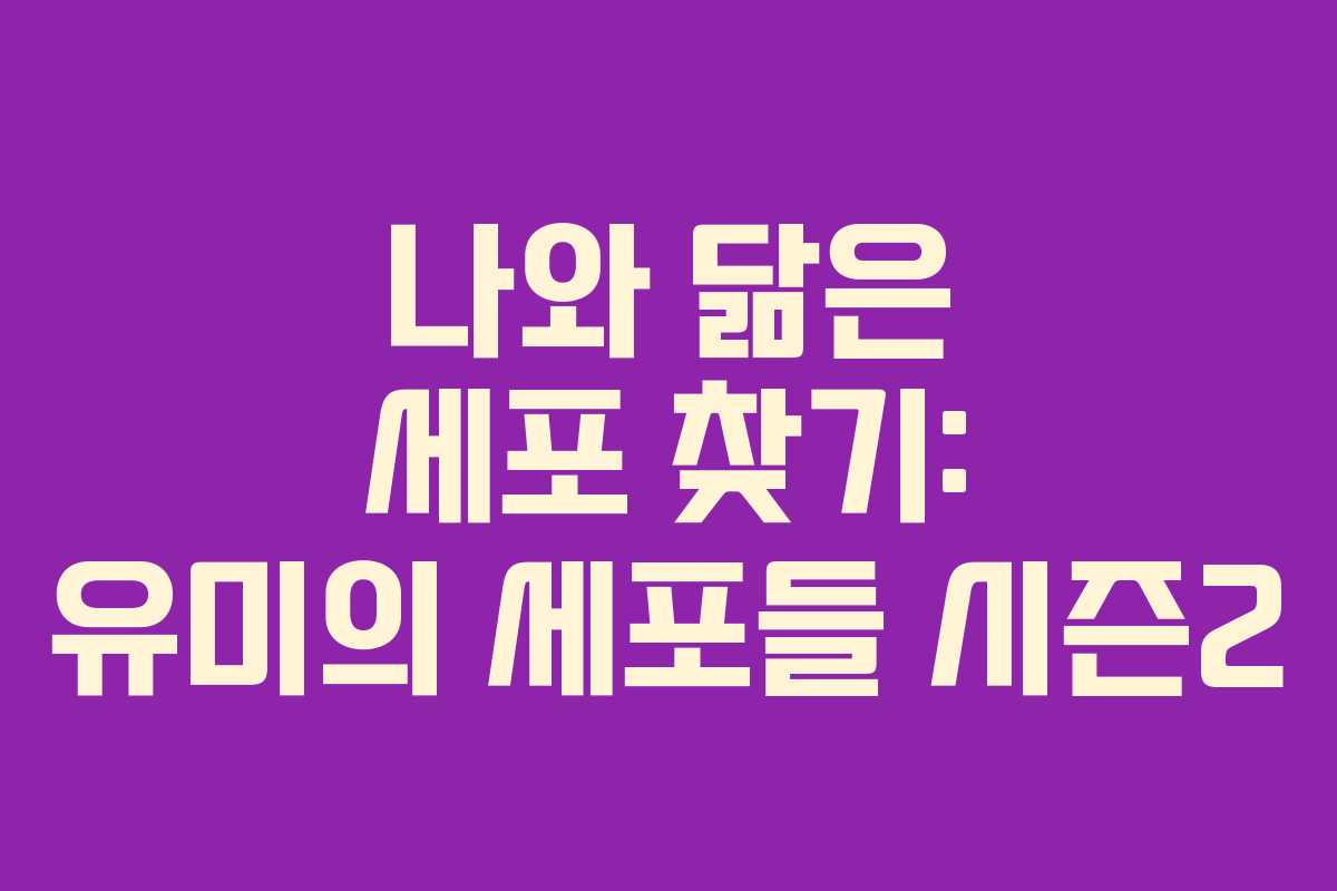 유미의 세포들 시즌2가 방영되면서, 많은 팬들이 자신과 닮은 세포를 찾는 테스트에 참여하고 있습니다. 이 테스트는 여러분의 성격을 기반으로 다양한 세포 유형을 발견할 수 있는 재미있는 방법입니다.