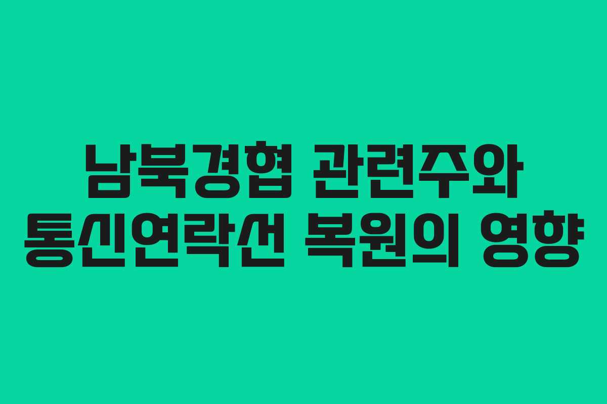 남북 통신연락선 복원 이후, 남북관계가 개선될 경우 경협 관련주들은 긍정적인 영향을 받을 것으로 보입니다. 특히, 북한의 인프라 건설이 본격화되면 관련 기업들의 수혜가 예상되므로, 투자자들은 이 점을 고려해야 합니다.