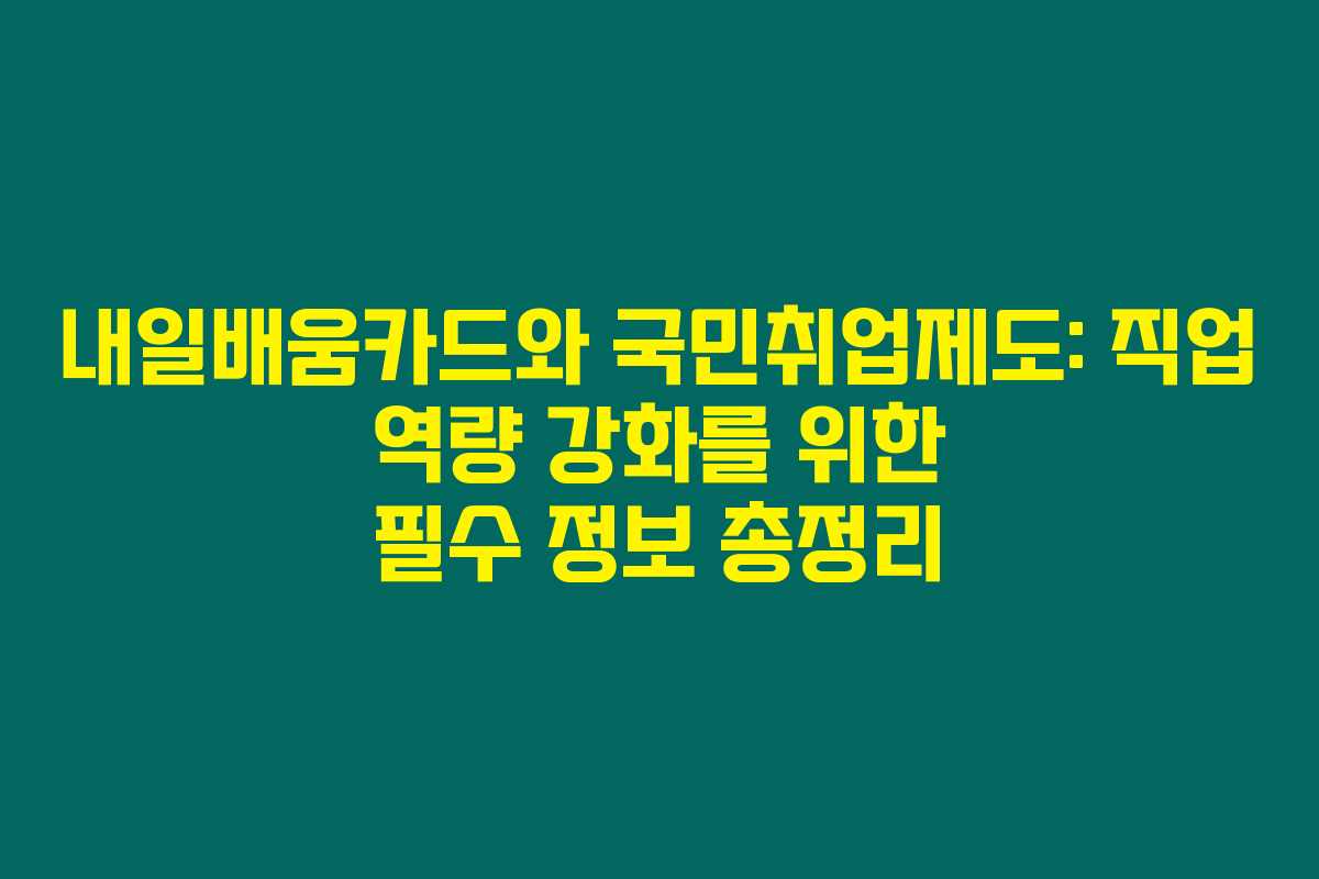 내일배움카드와 국민취업제도는 각각의 장점을 활용해 취업과 직업 능력 향상을 지원하는 중요한 정부 정책입니다. 제가 직접 경험해본 바로는, 이 두 제도는 경제적 자립을 이루는 데 매우 효과적이라 느꼈어요. 아래를 읽어보시면 이 두 제도의 특징과 혜택, 신청 방법 등을 자세히 알 수 있습니다.