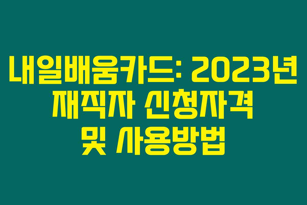 제가 직접 경험해본 결과로는, 재직자 내일배움카드는 직장인들이 자기 발전을 도모하고 직무능력을 향상시키는 데 큰 도움이 되는 제도입니다. 이 글에서는 내일배움카드의 신청 자격과 사용 방법에 대해 자세히 알아보겠습니다.