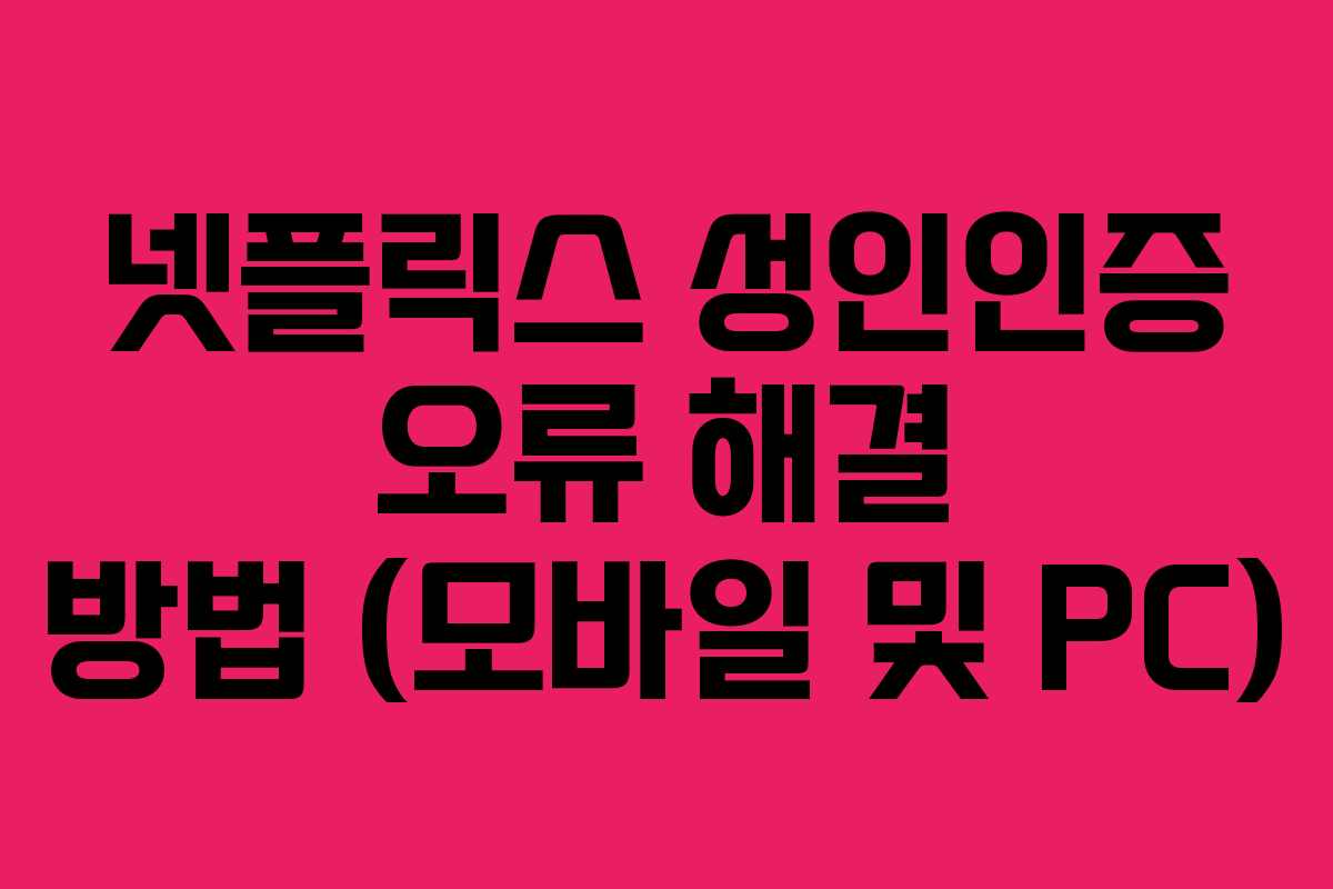 넷플릭스는 성인 콘텐츠를 안전하게 이용하기 위해 연령 인증을 요구합니다. 그러나 성인 인증 과정에서 오류가 발생하면 콘텐츠 시청이 중단될 수 있습니다. 이 글에서는 넷플릭스 성인 인증의 필요성과 방법, 자주 발생하는 오류 및 해결법을 구체적으로 설명합니다.