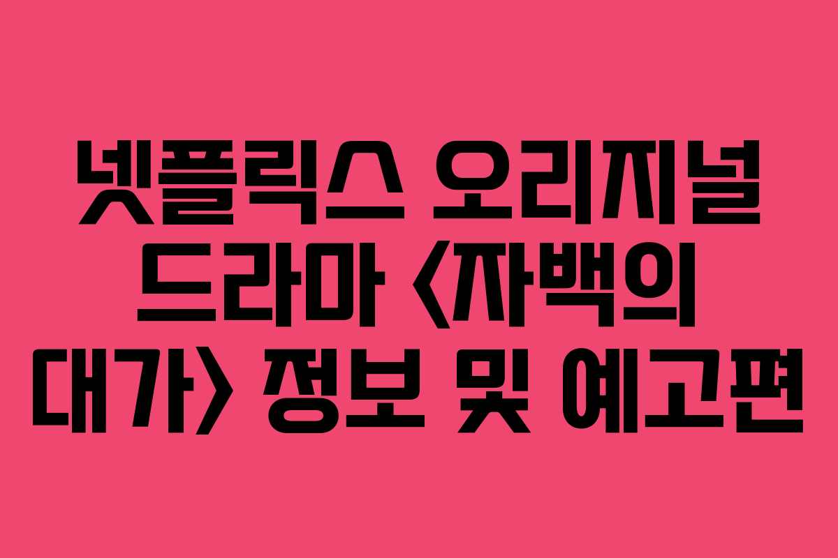 넷플릭스에서 곧 공개될 드라마 <자백의 대가>는 미스터리 스릴러 장르로, 범죄를 주제로 한 흥미진진한 이야기를 담고 있습니다. 이 드라마는 다양한 출연진과 매력적인 스토리라인으로 기대를 모으고 있습니다.