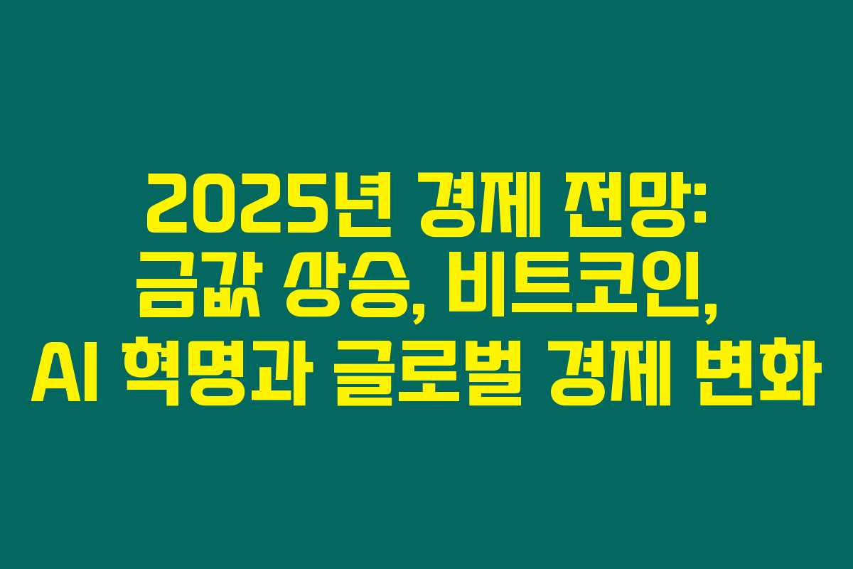 2025년 경제는 금값 상승, 비트코인 가격 변동, AI 혁명 등 여러 요인으로 빠르게 변화할 전망입니다. 이러한 변화로 인해 투자자들은 안전자산과 기술 투자에 관심이 증가하고 있는데요. 아래를 읽어보시면 이러한 경제 전망이 어떻게 투자 전략에 영향을 미치는지에 대해 알아볼 수 있습니다.