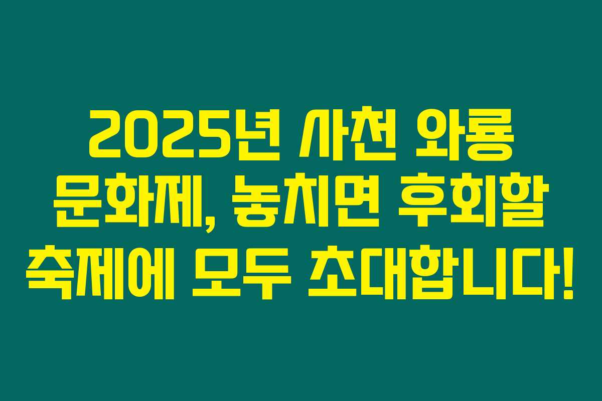 2025년 5월 1일부터 4일간 개최되는 사천 와룡 문화제는 단순한 지역 축제가 아닙니다. 고려 현종과 용의 전설이 담긴 이 축제에 방문하지 않으면 후회할지도 모릅니다. 천 년의 이야기를 직접 느낄 수 있는 기회를 놓치지 마세요! 아래를 읽어보시면 사천 와룡 문화제의 매력을 알고 가실 수 있을 거예요.