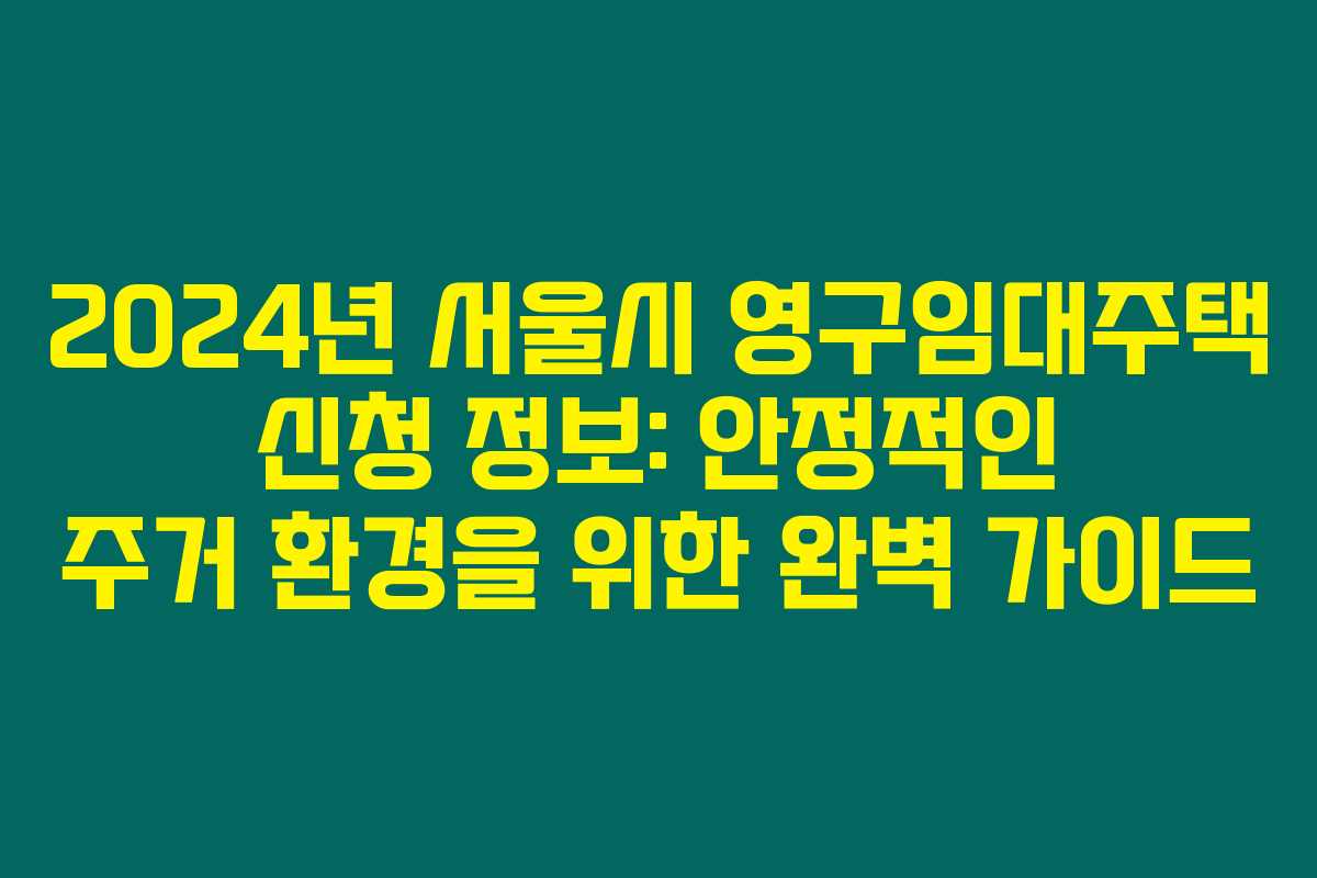2024년 서울시 영구임대주택 신청 정보: 안정적인 주거 환경을 위한 완벽 가이드