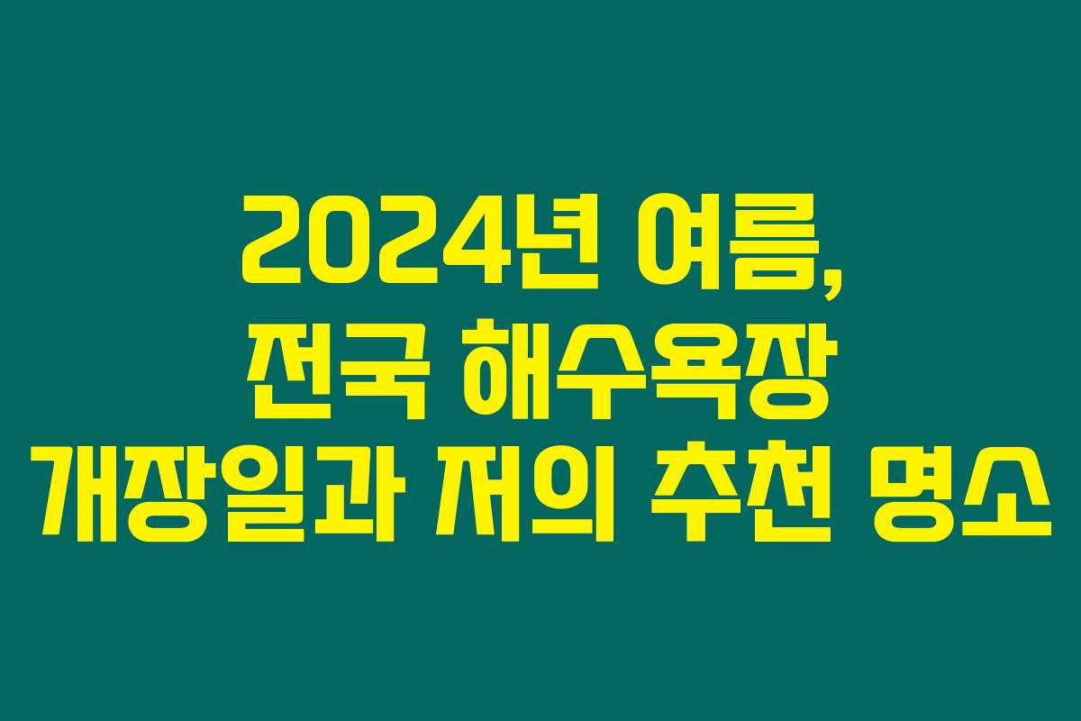 2024년 여름, 해수욕장 개장일은 지역별로 다르게 설정되어 있어요. 예를 들어, 부산 해운대는 6월 1일, 제주 협재는 6월 24일에 개장해요.