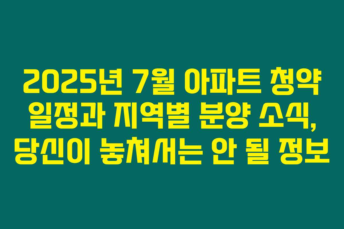 2025년 7월 아파트 청약 일정과 지역별 분양 소식, 당신이 놓쳐서는 안 될 정보