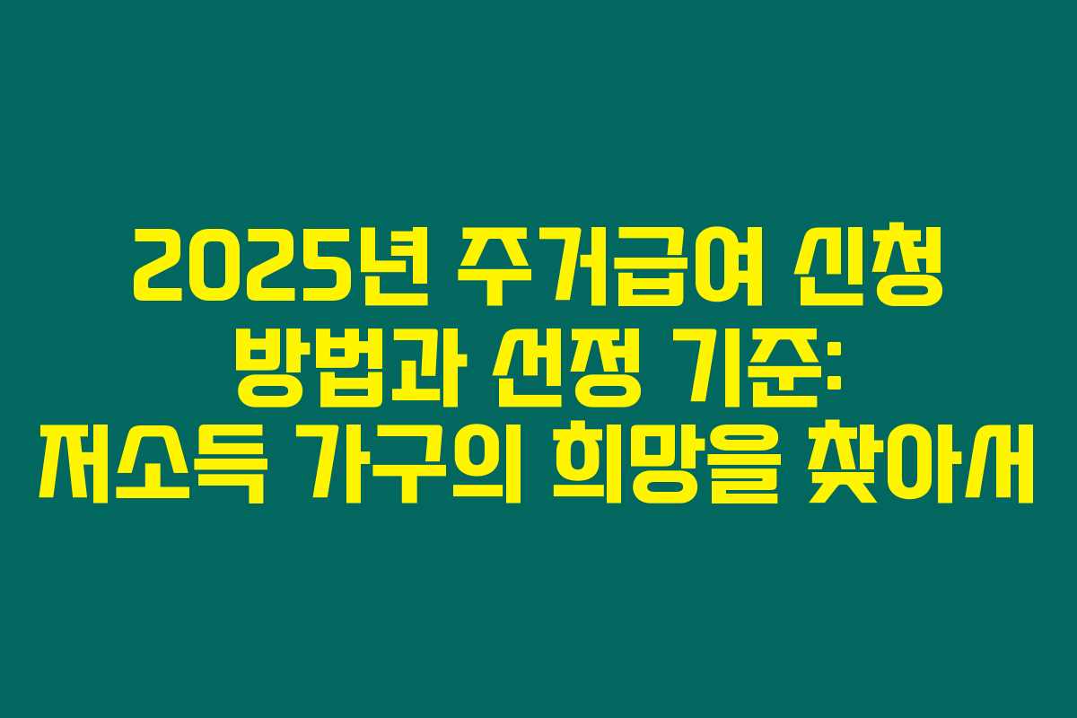 주거급여는 저소득 가구의 주거 안정을 도모하기 위한 중요한 제도입니다. 이 정보를 통해 지원을 받는 데 도움이 되었으면 해요. 주거 급여 신청을 통해 안정적인 생활을 위한 토대를 마련하시길 바라요!