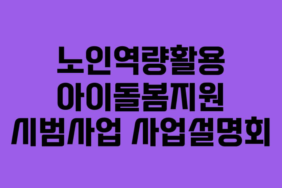 노인역량활용 아이돌봄지원 시범사업은 경력과 역량이 높은 신노년세대를 아이돌보미로 활동할 수 있도록 지원하는 프로그램입니다. 이 사업은 저출생 위기 극복과 함께 노인의 사회참여를 확대하는 데 기여하고자 합니다.