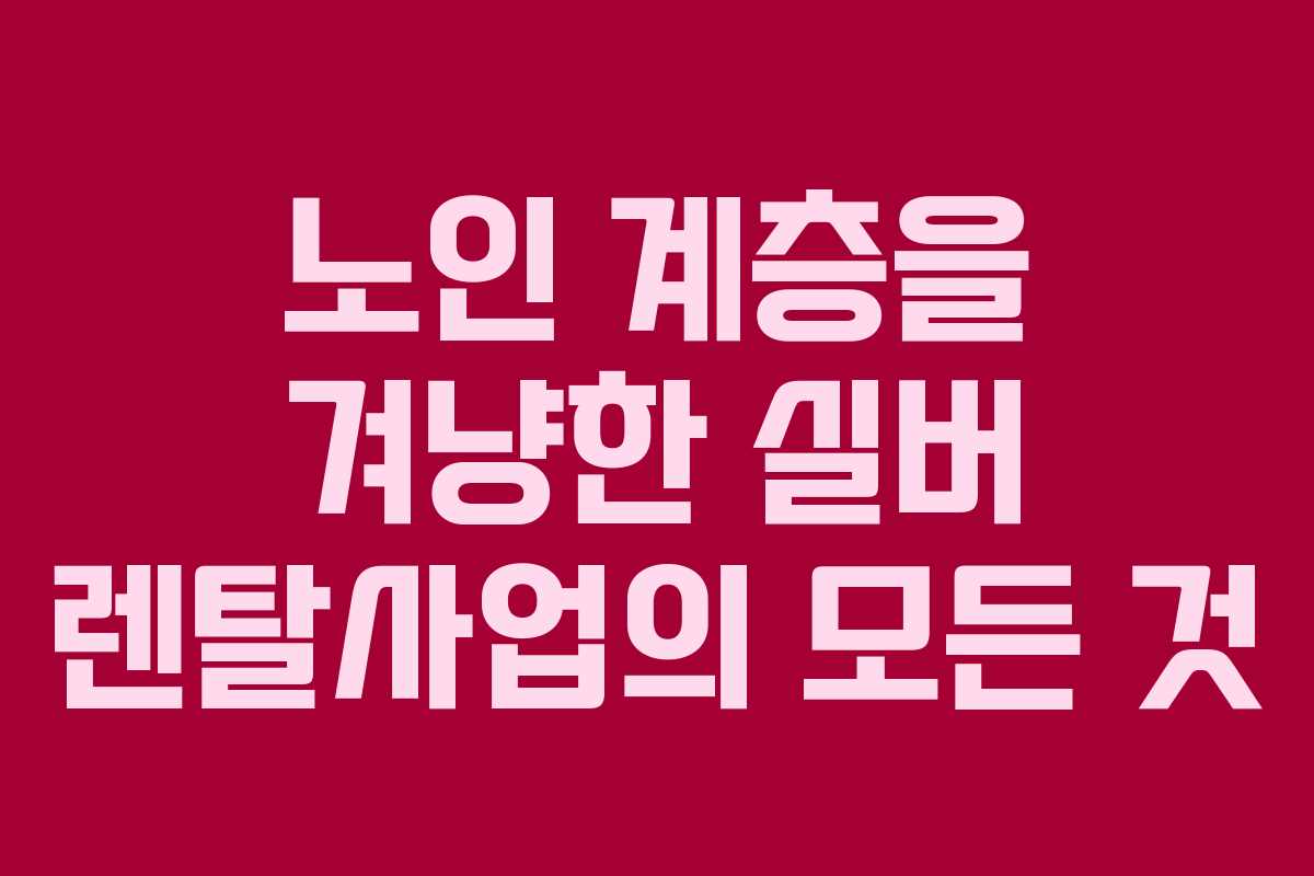 노인 인구가 증가함에 따라 실버 렌탈사업은 새로운 비즈니스 기회를 제공하고 있습니다. 이 글에서는 노인 계층을 위한 다양한 렌탈 서비스와 함께 노인 복지를 위한 신사업 아이디어를 소개하겠습니다.