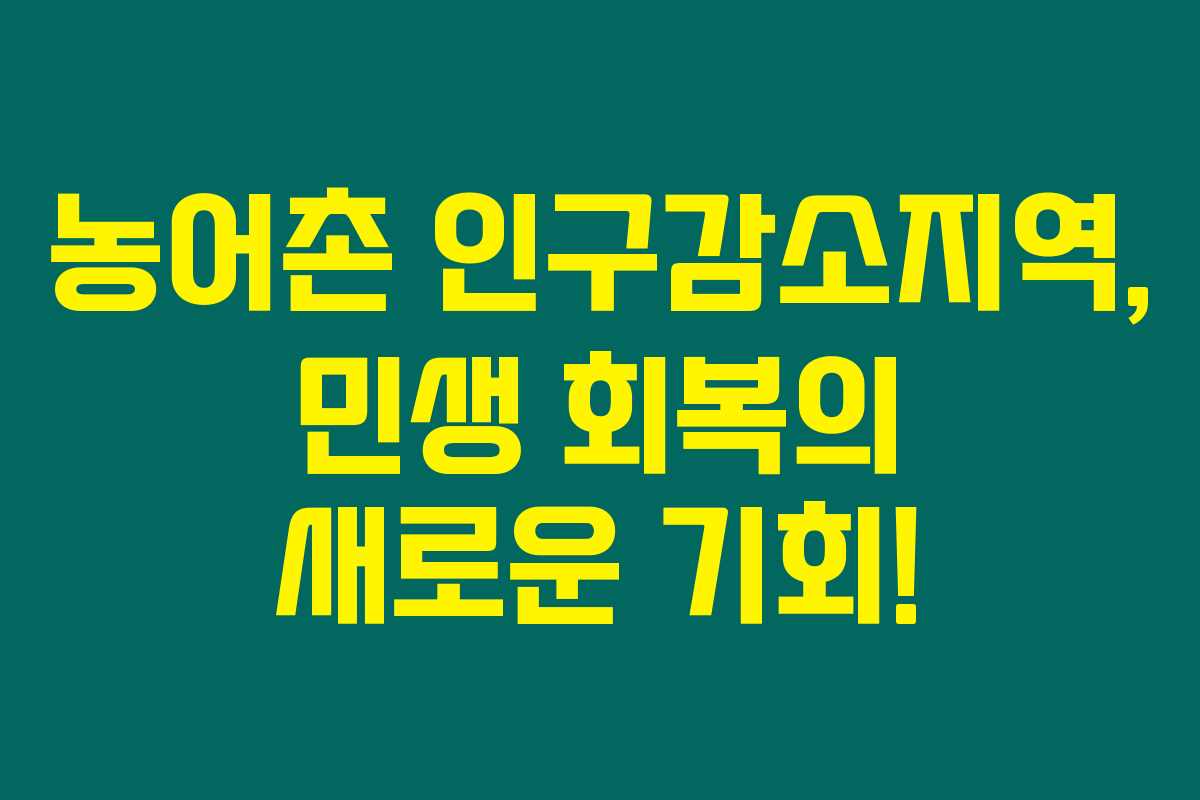 농어촌 인구감소지역, 민생 회복의 새로운 기회는 여러분의 손에 달려 있습니다!