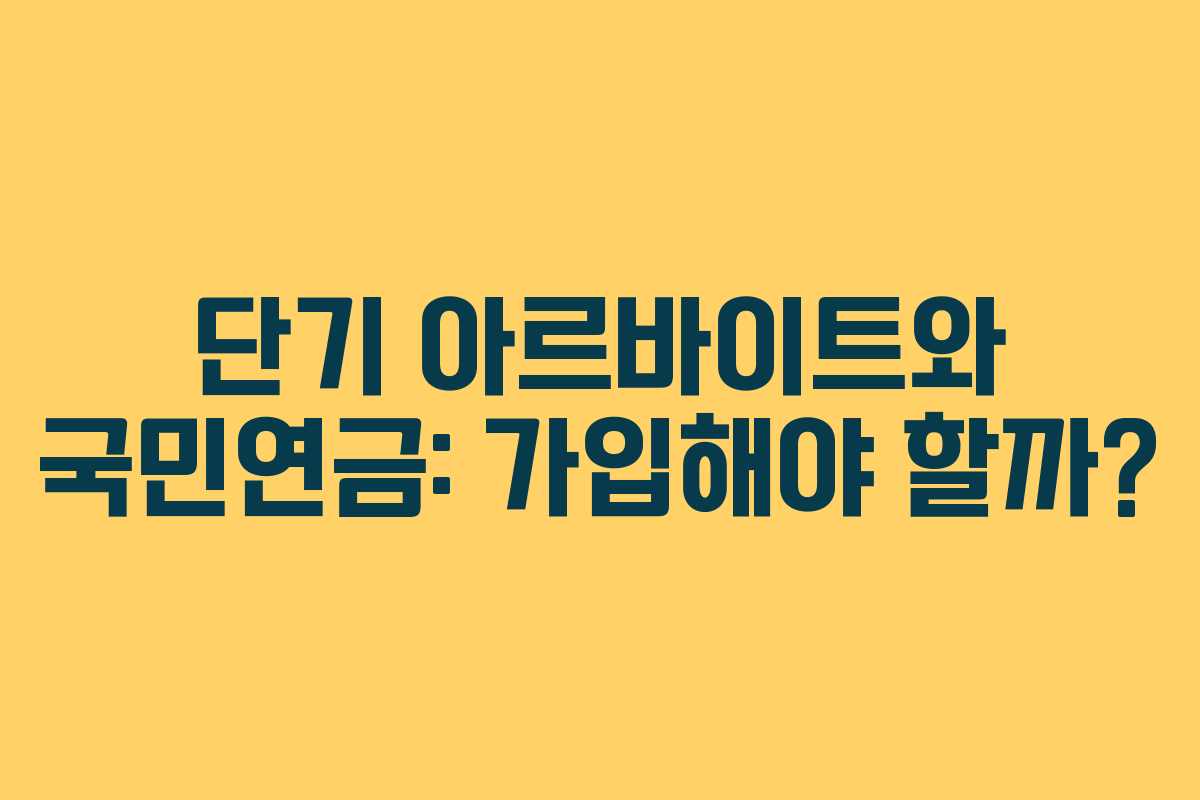 최근 많은 사람들이 단기 아르바이트를 통해 소득을 올리고 있습니다. 그러면서 국민연금 가입 여부에 대한 고민이 커지고 있는데요. 특히 1개월 또는 2개월 단기 아르바이트의 경우, 국민연금을 내야 하는지에 대해 명확한 정보를 제공하겠습니다.