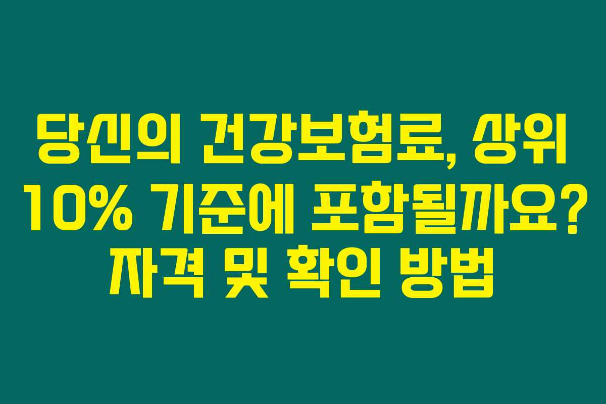제가 직접 리서치한 바로는, 건강보험료 상위 10%에 해당하는 사람들은 직장가입자는 대략 월 47만 5천 원 이상의 보험료를 납부하고, 지역가입자는 약 41만 7천 원 이상의 보험료를 내야 합니다. 하지만 이 기준이 어떻게 적용되는지 정확히 이해하기 위해서는 여러 복잡한 산정 방식을 살펴봐야 한답니다. 아래를 읽어보시면, 자신의 상황이 이 기준에 해당하는지 확인하는 방법을 알 수 있어요.