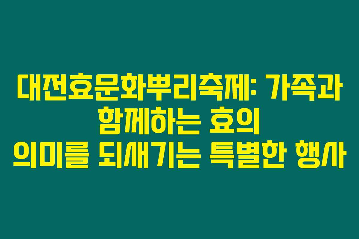 가족 모두가 참여할 수 있는 대전효문화뿌리축제는 단순한 축제가 아닙니다. 진심으로 가족 간의 사랑을 느끼고, 함께 즐기며 좋은 추억을 만들어 가는 시간입니다. 효심이 가득한 효문화뿌리축제는 3대 가족이 함께 참여할 수 있도록 다양한 공간과 프로그램을 제공하니, 놓치지 마세요!