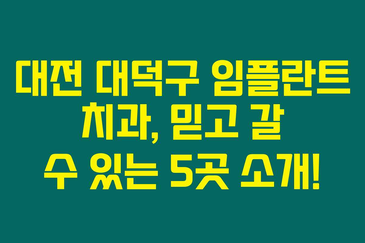 임플란트를 고민하고 계시나요? 대전 대덕구 치과마다 가격도 다르고, 신뢰도도 천차만별이죠. 그래서 오늘은 대전 대덕구에서 믿고 방문할 수 있는 임플란트 치과 5곳을 추천해드릴게요! 아래를 읽어보시면 어떤 치과가 좋은 선택인지 금방 알게 되실 거예요.