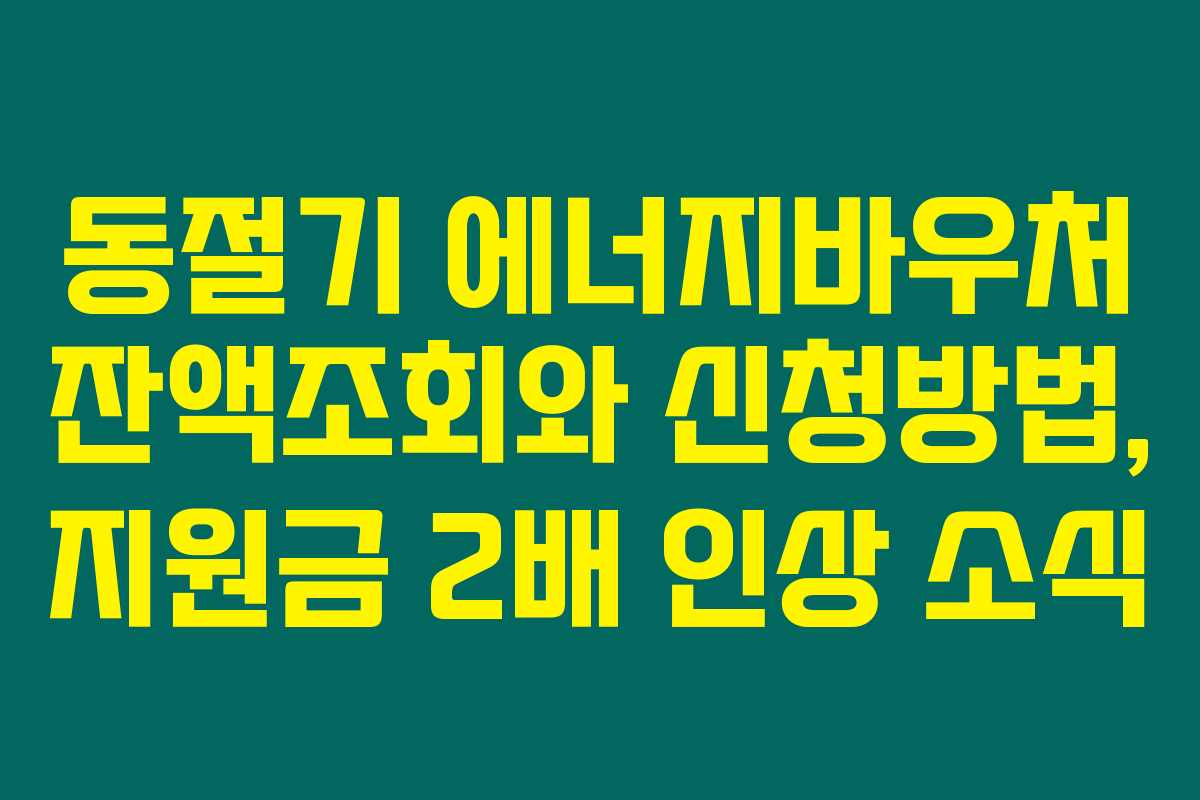 에너지바우처에 관심이 많으신가요? 만약 겨울철 에너지비용에 대한 부담이 크신 분이라면 최근 소식에 주목해야 해요. 바로 동절기 에너지바우처 지원금액이 2배로 인상되었답니다. 에너지비용으로 고민하는 분이라면 아래를 읽어보시면 이 기회를 놓치지 않고 최대한의 지원 혜택을 받을 수 있는 방법을 확인할 수 있어요.