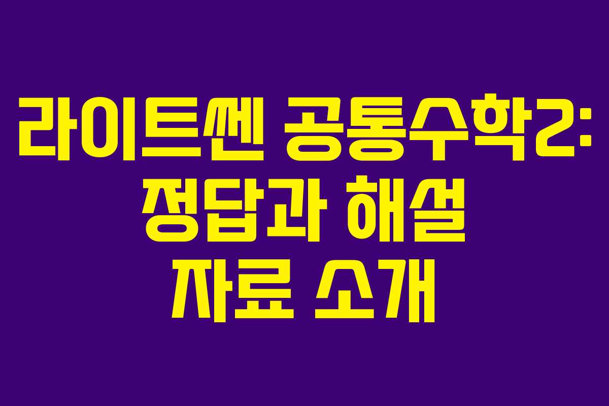 라이트쎈 공통수학2: 정답과 해설 자료 소개
