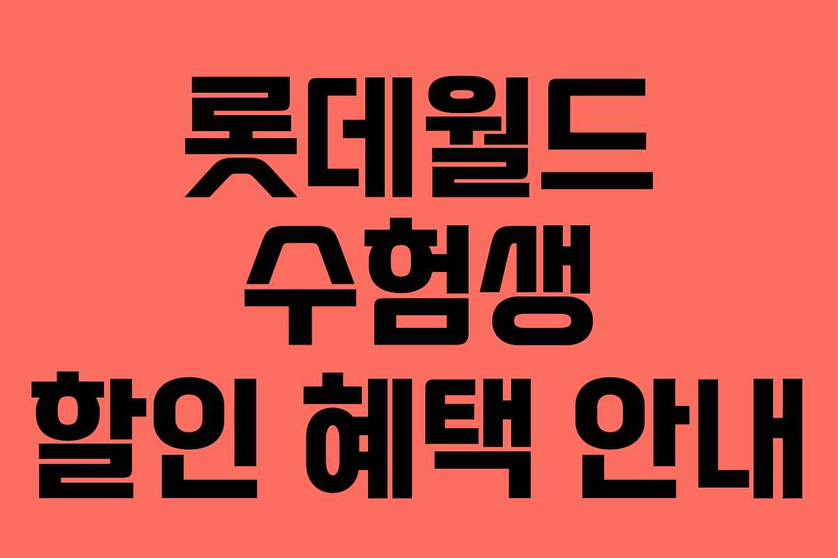 2025년 수능 수험생은 2024년 11월 14일부터 11월 30일까지 롯데월드의 다양한 시설을 대폭 할인된 가격에 이용할 수 있습니다. 이 기간 동안 수험생들은 종일권을 26,000원의 가격으로 구매할 수 있으며, 이는 일반 가격 대비 최대 57% 할인된 금액입니다. 할인 혜택을 받기 위해서는 롯데월드 매표소에서 수험표를 제시하면 됩니다.