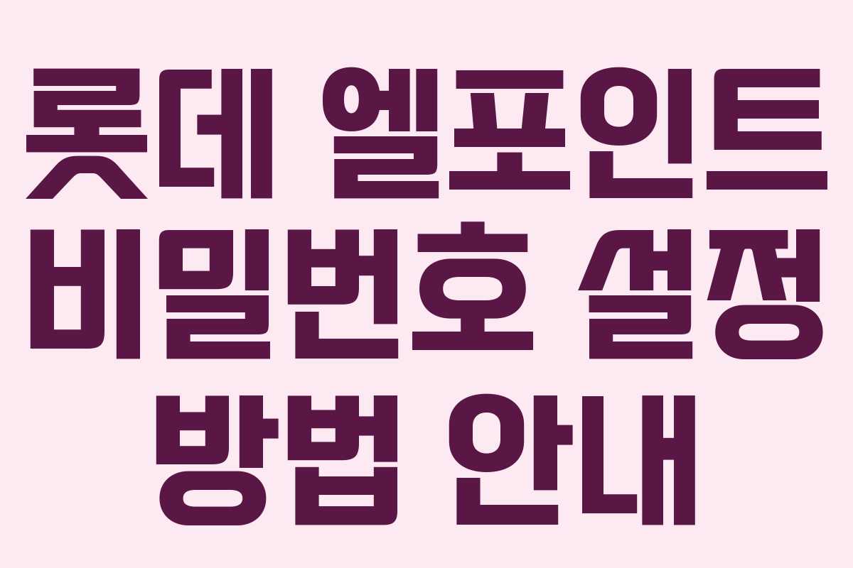 롯데 엘포인트는 포인트 적립과 사용을 통해 쇼핑의 즐거움을 더해주는 서비스입니다. 비밀번호를 설정하면 다양한 제휴사에서 포인트를 활용할 수 있어 편리합니다. 이번 글에서는 롯데 엘포인트 비밀번호 설정 방법에 대해 자세히 알아보겠습니다.