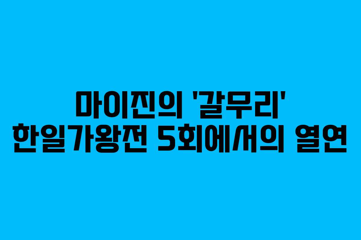 마이진이 부른 ‘갈무리’는 한일가왕전 5회에서 선보인 곡으로, 특히 1대 1 현장 지목전에서의 강렬한 퍼포먼스가 기억에 남습니다. 이 곡은 트로트의 전설 나훈아의 대표작 중 하나로, 1989년에 발표된 이후로 많은 사랑을 받아왔습니다. ‘갈무리’는 헤어진 연인을 그리워하는 감정을 표현한 정통 트로트로, “내가 왜 이러는지 몰라”라는 가사가 특히 인상적입니다.