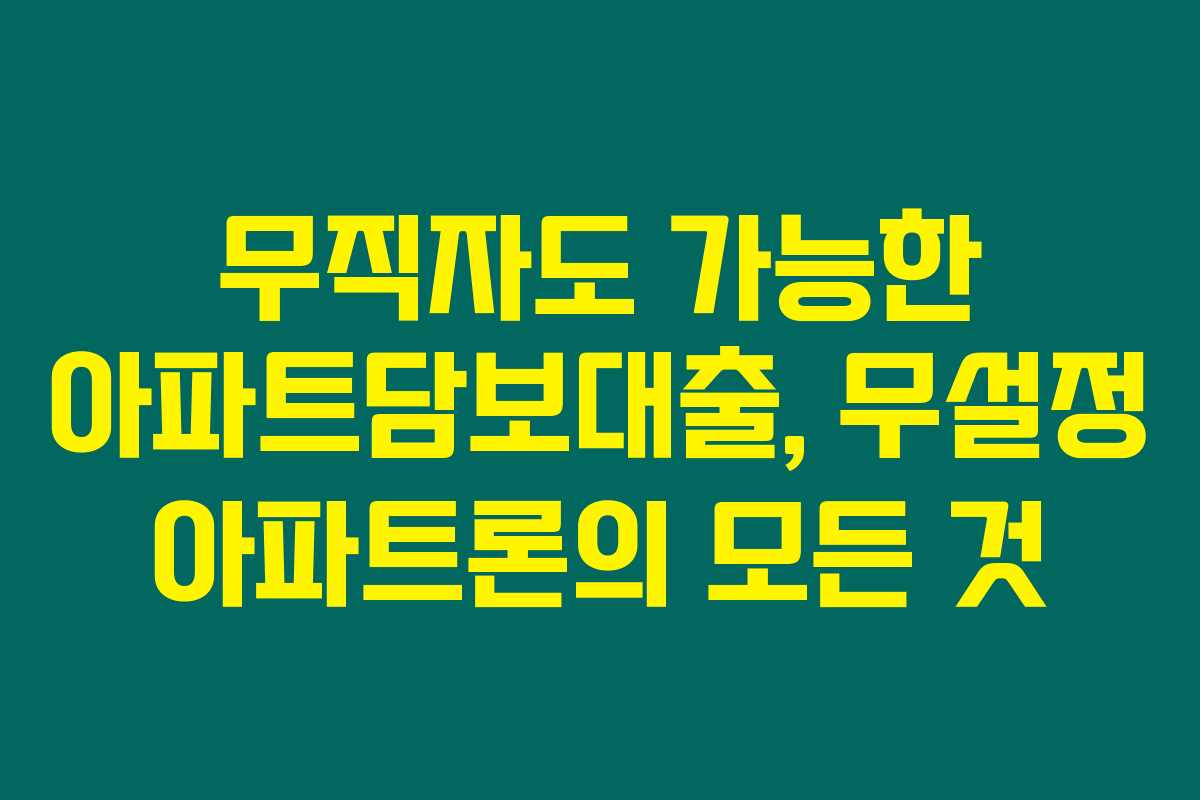 무직자라고 해도 아파트를 담보로 대출을 받을 수 있다는 사실을 알고 계셨나요? 무담보 아파트론은 무직자나 주부도 신용에 따라 대출을 받을 수 있는 매력적인 금융상품이에요. 아래를 읽어보시면 이 제품의 지식과 신청 방법에 대해 알차게 배울 수 있을 거예요.
