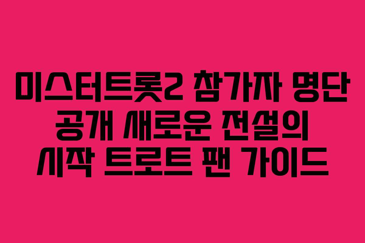 답변: 본 글은 미스터트롯2 참가자 명단 과 소개영상의 핵심 포인트를 정리하고 향후 무대 방향성까지 제시합니다