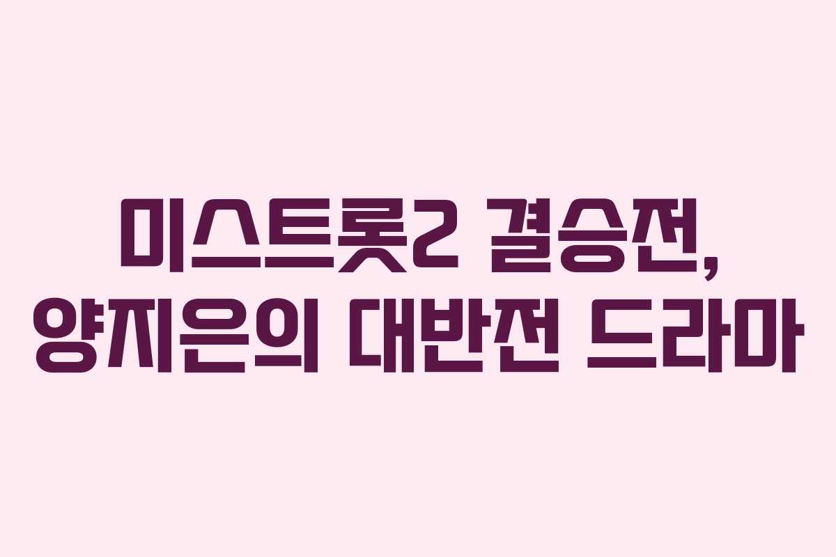트로트 오디션 프로그램 ‘미스트롯2’의 결승전 1라운드에서 양지은이 믿기지 않는 대반전을 이뤘습니다. 2월 25일 방송된 이 결승전은 작곡가 미션을 통해 각 참가자들의 매력을 어필하며 진행되었습니다. 마스터 점수와 실시간 관객 점수, 그리고 대국민 문자 투표 점수가 합산되어 순위가 발표되었습니다. 문자 투표에서 약 200만명의 참여로 큰 관심을 받았으며, 결국 1위는 홍지윤, 2위는 양지은, 3위는 김의영이 기록했습니다. 하지만 문자 투표 결과가 공개되자 양지은이 홍지윤을 제치고 1위에 올라서는 놀라운 전개가 벌어졌습니다. 양지은은 준결승에서 탈락한 상황에서 진달래의 하차로 인해 생긴 결원으로 돌아오게 되었고, 그 결과로 1위에 오르는 기적을 이루었습니다.