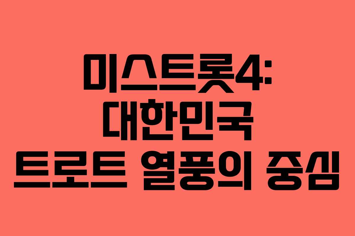 미스트롯4는 대한민국의 트로트 열풍을 다시 한번 일으키고 있으며, 많은 이들에게 감동을 선사할 것입니다. 앞으로도 트로트의 매력을 전 세계에 알릴 수 있는 기회가 될 것입니다.