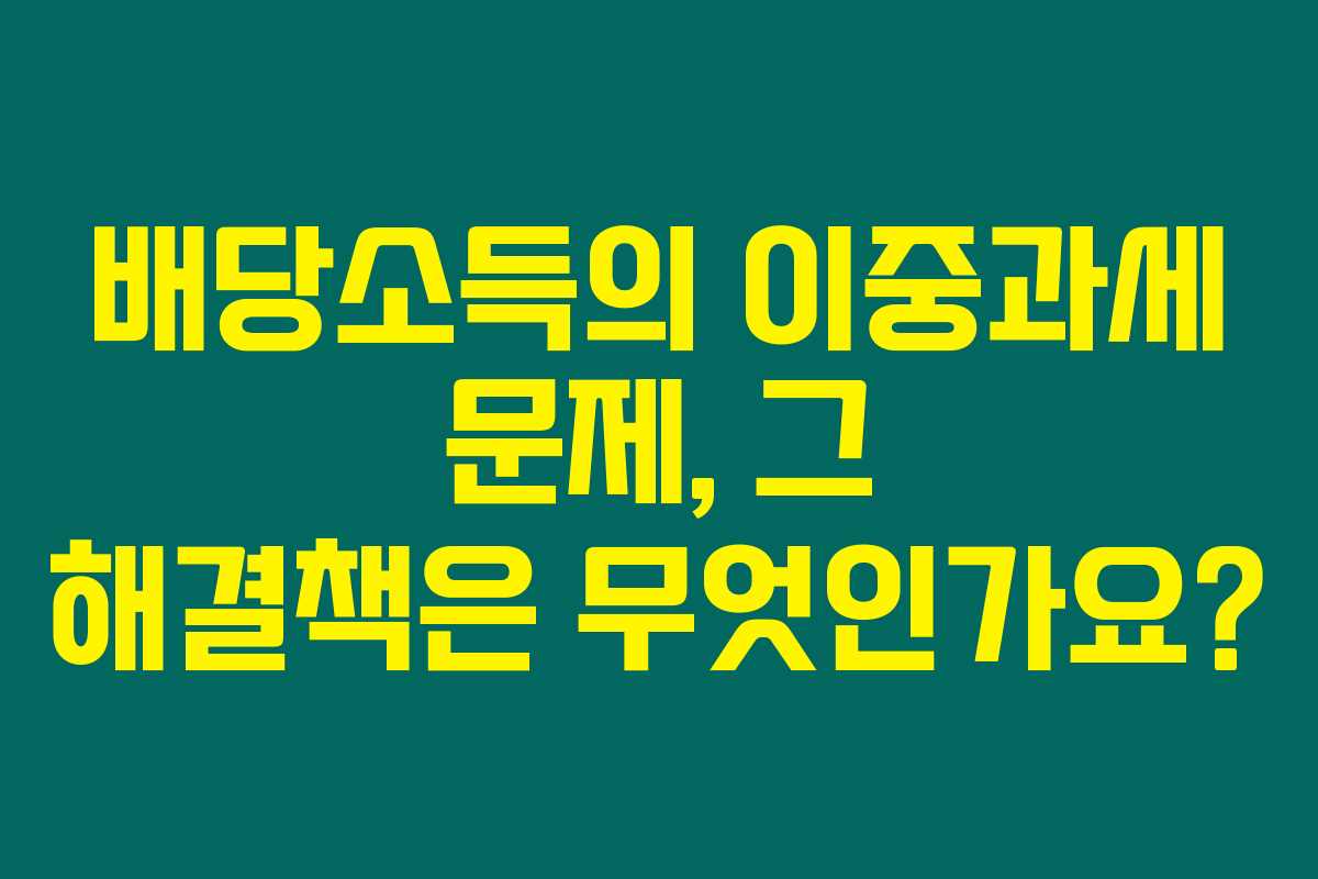 제가 알아본 바로는 많은 투자자들이 배당소득에 대한 이중과세 문제에 대해 고민하고 있습니다. 실제로 배당소득에 대한 두 번의 세금 부과는 개인 투자자들에게 상당한 부담이 될 수 있는데요, 이 문제에 대한 한국의 접근을 살펴보면 해법이 보일 것입니다. 아래를 읽어보시면 배당소득의 이중과세 조정 방법에 대한 자세한 내용이 담겨 있습니다.