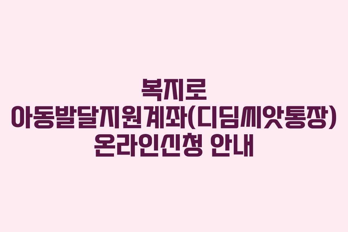 아동의 발달을 지원하기 위한 디딤씨앗통장의 온라인 신청이 시작되었습니다. 이 통장은 아동이 건강하고 안전하게 성장할 수 있도록 도와주는 중요한 금융 지원 프로그램입니다.