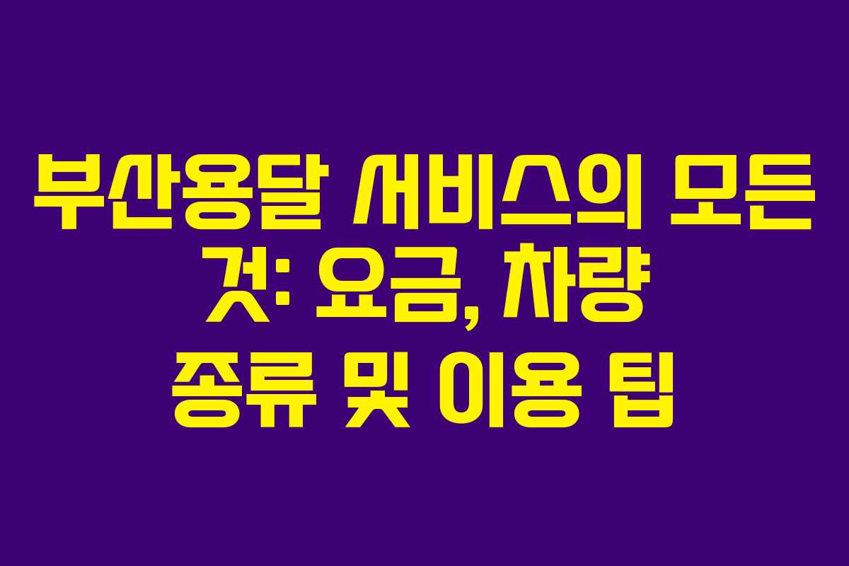 부산에서 용달 서비스를 이용하려는 분들을 위해 다양한 차량 종류와 요금, 그리고 저렴하게 이용하는 팁을 소개합니다. 특히, 부산 강서구 생곡동과 김해시 장유동을 연결하는 실제 사례를 참고하여 유용한 정보를 제공하겠습니다.