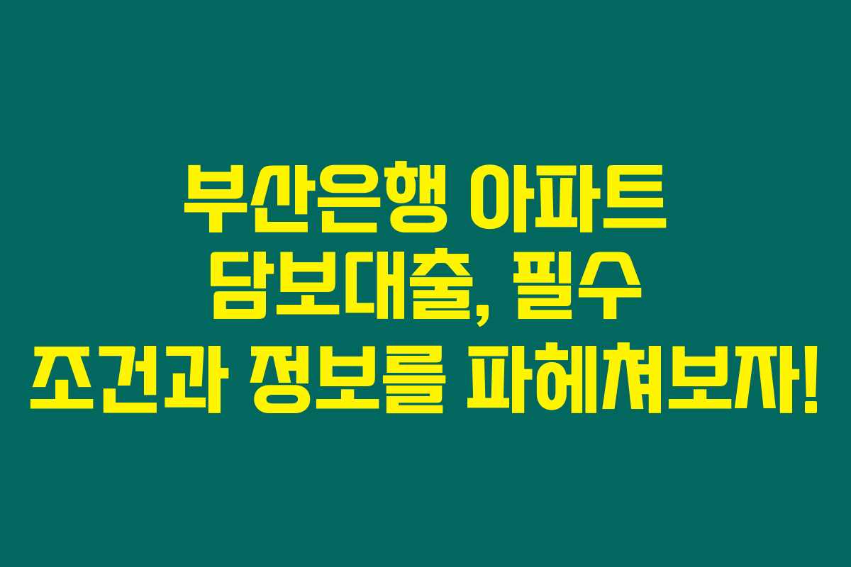 부산은행 아파트 담보대출의 장점과 활용 방법