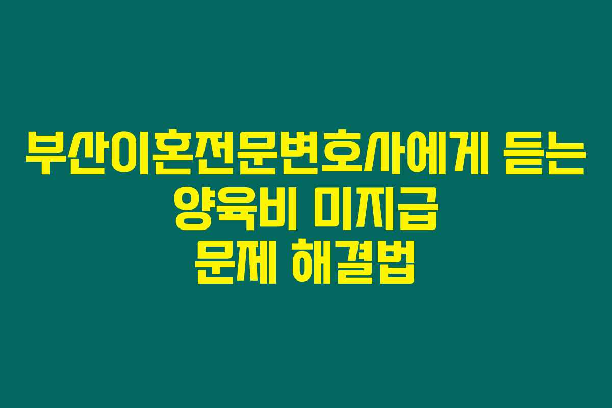 부산에서 양육비 미지급 문제로 고민하고 계신 분들은 변호사와 상담하여 법적인 조치를 확인해보시는 것이 좋습니다. 이를 통해 어려운 상황을 극복할 수 있는 길이 열릴 것입니다.