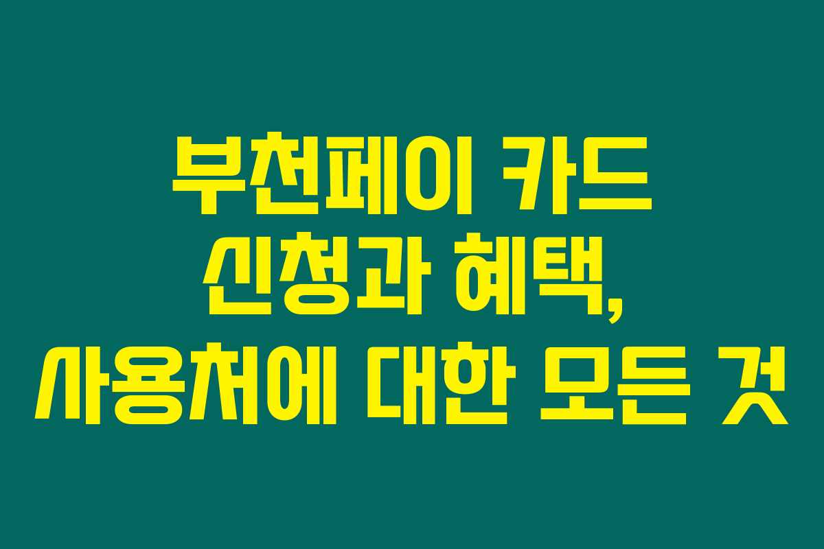 부천페이 카드 신청과 혜택, 사용처에 대한 모든 것