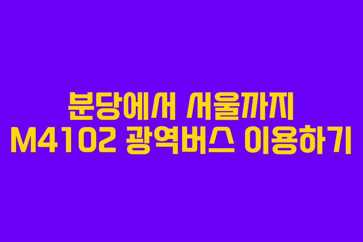 분당에서 서울 강북권으로 출퇴근하는 분들을 위해 M4102 광역버스 노선과 첫차 및 막차 시간표를 자세히 안내드립니다. 이 버스는 분당과 서울을 연결하는 중요한 교통수단으로, 출퇴근 시 많은 분들이 이용하고 있습니다.