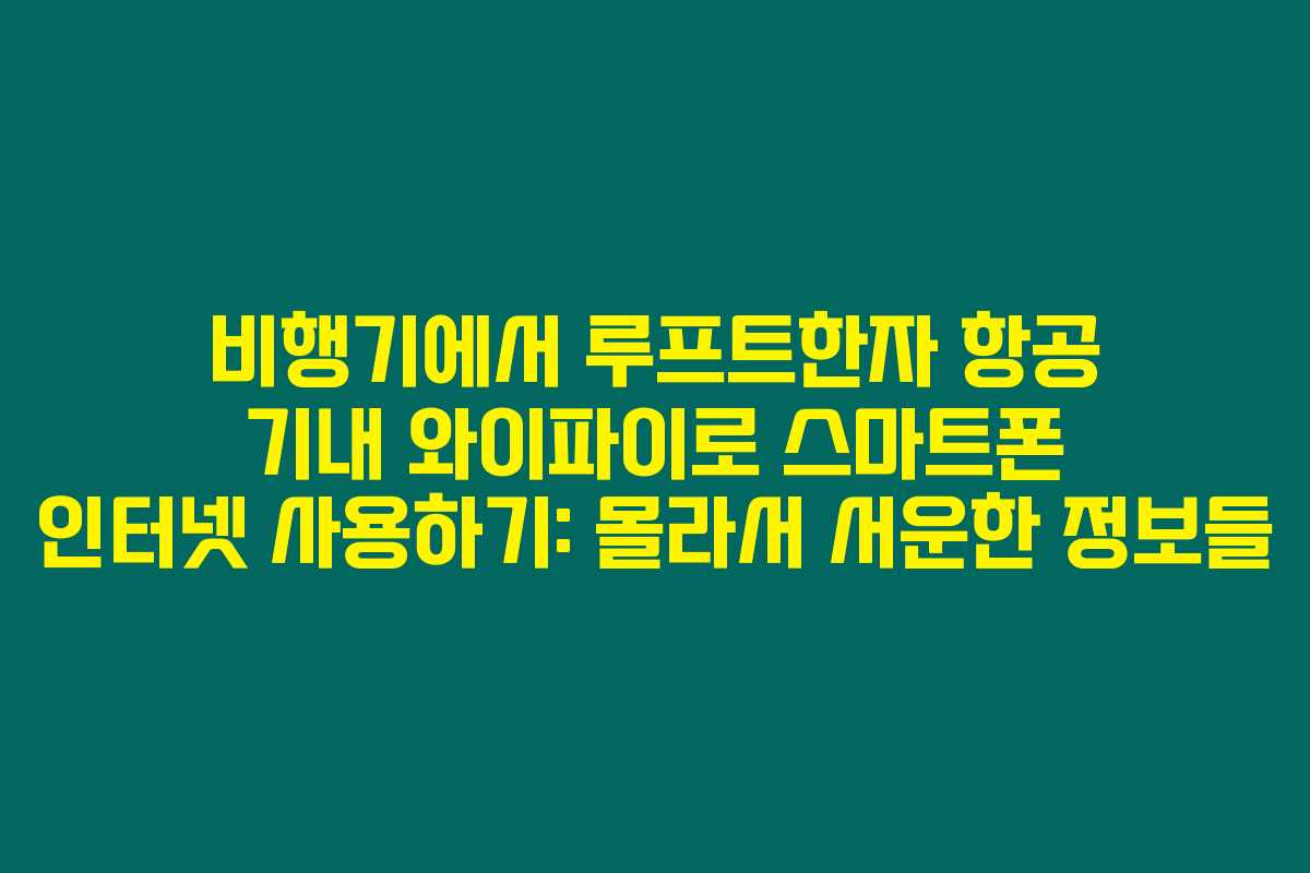 제가 알아본 바로는, 루프트한자 항공에서 제공하는 기내 와이파이 서비스는 비행 중의 시간 활용에 많은 도움을 주는 편리한 기능이에요. 비행기에서 인터넷을 사용할 수 있다는 소식은 여행자들에게 큰 매력으로 작용하고 있답니다. 아래를 읽어보시면 루프트한자 항공의 기내 와이파이 서비스에 대한 자세한 내용을 확인할 수 있을 거에요.